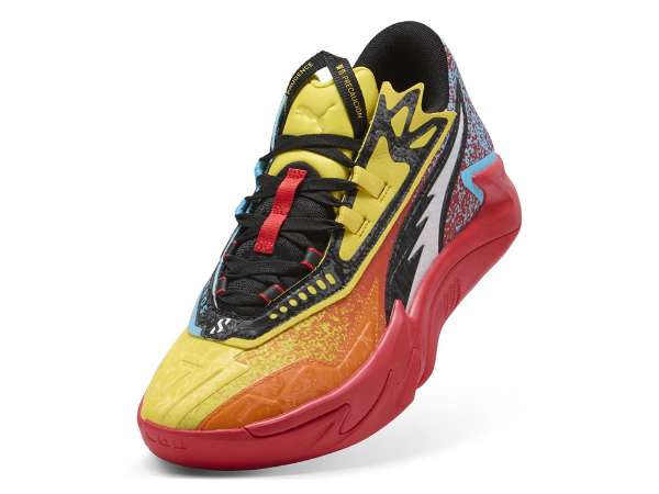 スクートロゴ、ギアデザインのゴム底、ファストアイステイを採用したNBAスター選手、スクート・ヘンダーソンモデルのプーマバスケットボールシューズ。