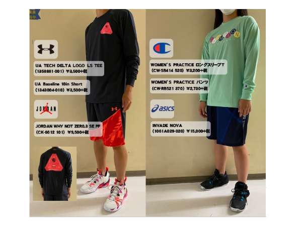 画像③<バスケットボールコーナー> こちらもロングプラクティスシャツが入荷しております。寒い日が来る前に!準備をしておきましょう。