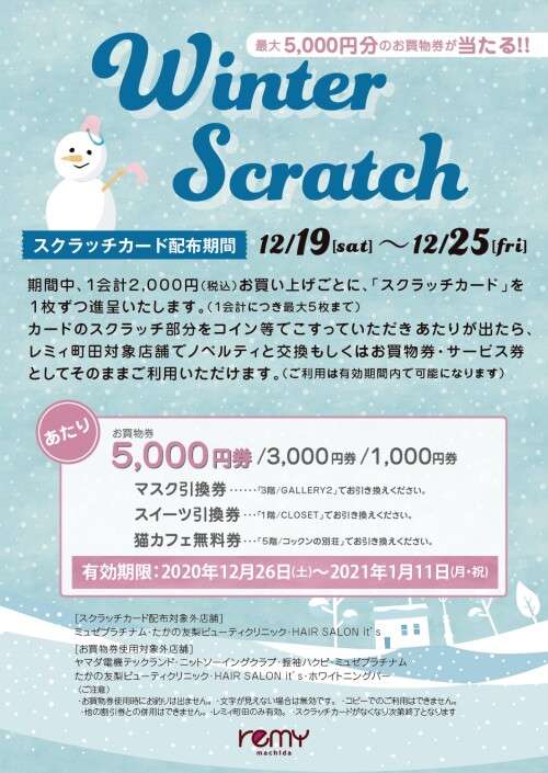 【町田店】お買い物券などが当たる♬ウインタースクラッチ開催中!