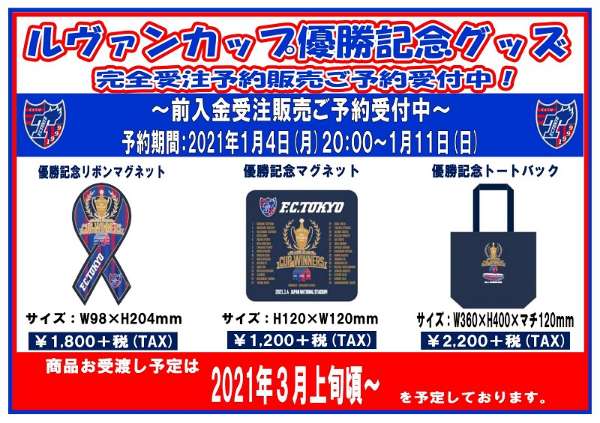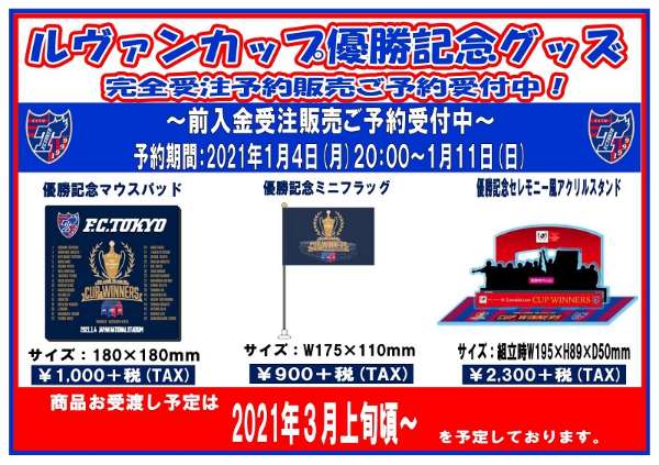【FC東京】2020JリーグYBCルヴァンカップ優勝記念グッズ予約受付スタート【新宿店 渋谷店 吉祥寺店】
