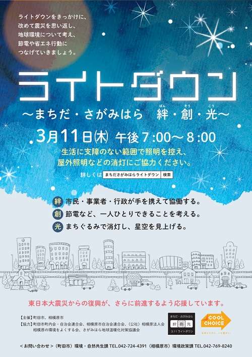 町田市・相模原市ライトダウン「まちだ・さがみはら絆(ばん)・創(そう)・光(こう)」