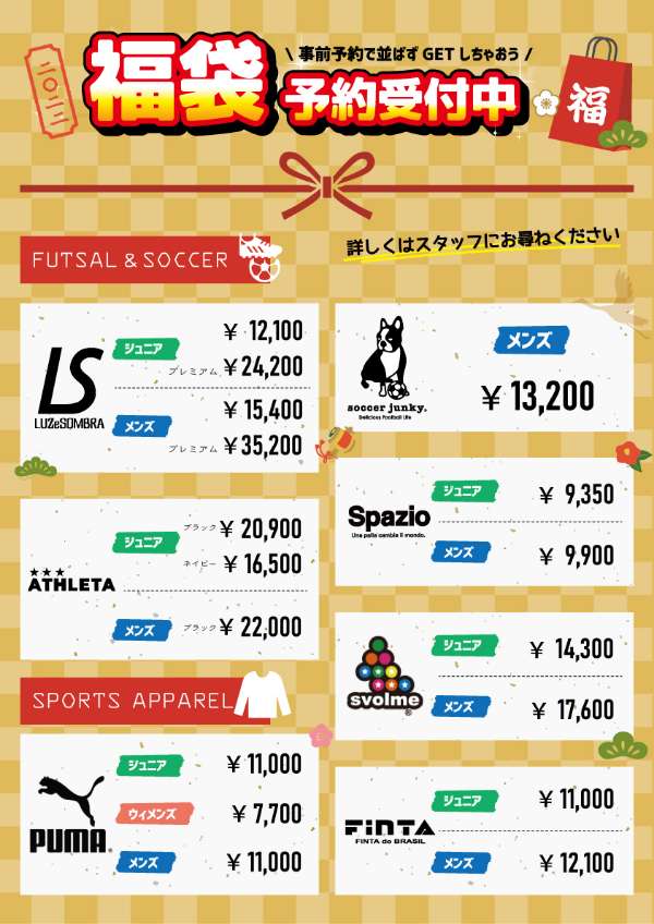 人気のフットボールブランドアパレル福袋がズラリ!