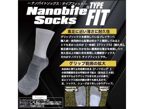 機能ソックスの要となるグリップ力、耐久性が更に増した【ナノバイトソックスFIT】