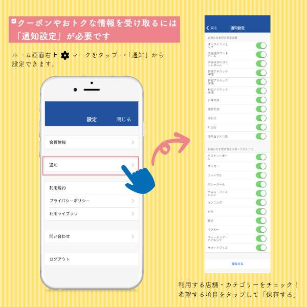 クーポンを受け取るには「通知設定」をON!【海老名店】の登録をお忘れなく!