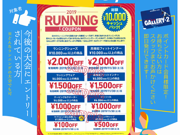 GALLERY・2 ランニング取扱い店舗では8/5よりランナー応援キャンペーンと題しましてなんと総額¥10,000分のクーポンを差し上げます♪
