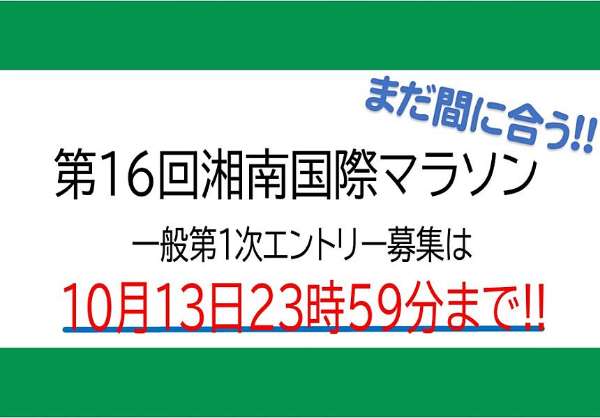 第16回 湘南国際マラソン1次エントリーは13日まで!