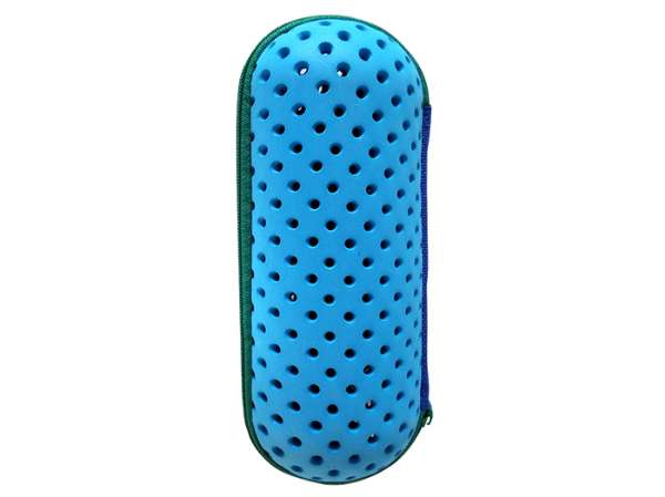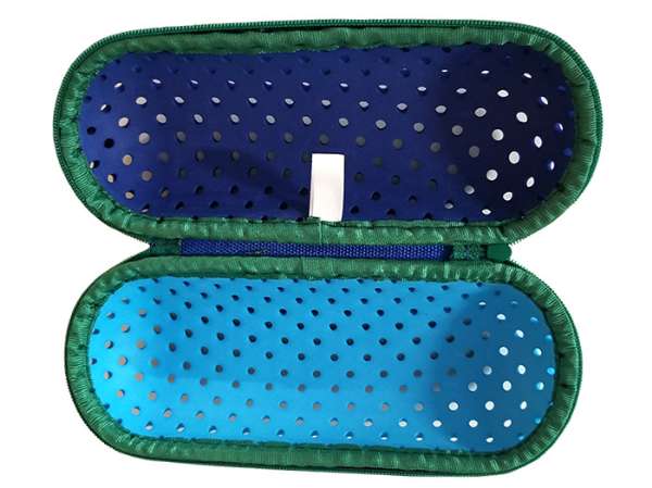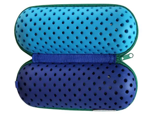 片方・ネイビー、片方・ターコイズ 、チャック部分はグリーン